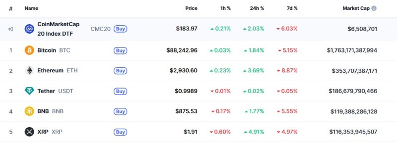 (서울=뉴스1) 박형기 기자 = 미국증시가 일제히 랠리함에 따라 암호화폐도 모두 상승하고 있다. 특히 비트코인은 8만8000달러를 회복했고, 리플은 5% 정도 급등하고 있다.