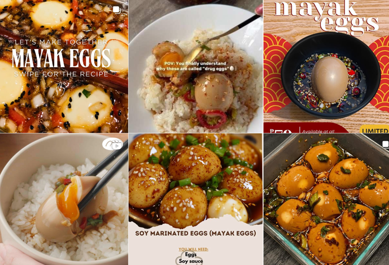 틱톡과 인스타그램에도 달걀장을 소개하는 숏폼 영상들이 빠르게 확산 중이다. 양념이 잘 된 반숙달걀장을 밥 위에 얹어 터뜨리고, 노른자가 흘러나오는 모습을 담아 제작한 영상들이 높은 조회수를 기록하며 #MayakEggs라는 해시태그와 함께 인기를 모으고 있다. "이건 내가 먹어본 달걀 요리 중 최고다. 돈이 없을 때 먹기 시작했는데, 이제는 돈이 있어도 이걸 먹는다“, ”달걀장 레시피 때문에 밥솥을 샀다“는 댓글들도 찾아볼 수 있다.