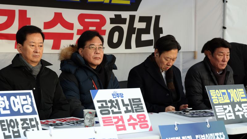 오전부터는 국회 본청 앞에서 소속 의원이 특검 수용을 촉구하는 릴레이 천막 농성에 돌입했다.