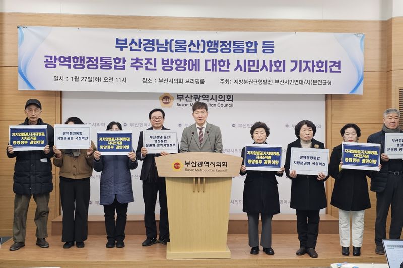 부산시민연대를 비롯한 지역 시민단체들은 27일 오전 부산시의회 브리핑실에서 기자회견을 열고 ‘부산·경남(울산) 행정통합에 대한 추진방향’ 제안 사항을 발표했다.