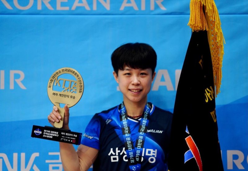 2024년 대통령기, 작년 종별선수권 우승에 이어 이번 대회 단식 정상에 오른 그는 "큰 대회에서 우승하고 싶었는데 뜻을 이뤄 너무 기쁘다"면서 "이상수 코치로부터 기술적으로나 정신적으로 많은 도움을 받았다"고 고마움을 전했다.