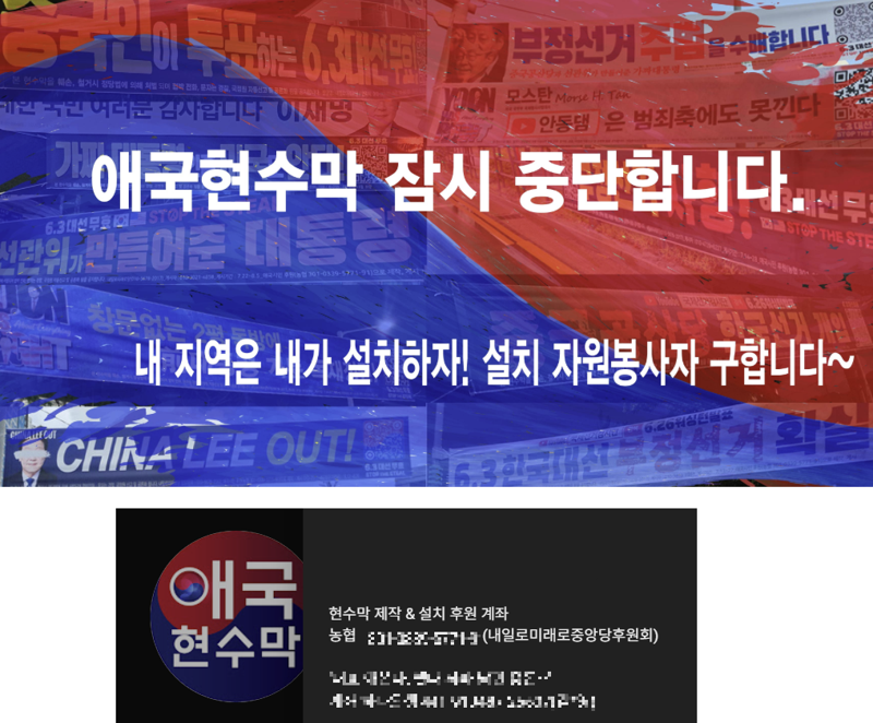 해당 단체는 이날 사회관계망서비스(SNS)를 통해 "내일로미래로당과는 더 이상 협력하기 어렵게 됐다"며 "앞으로는 내일로미래로당 명의 계좌로 애국현수막 후원금을 입금하지 말아달라"고 밝혔다.