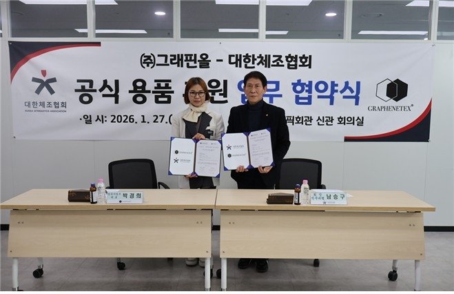 27일 오후 서울 송파구 올림픽회관에서 열린 체조협회와 후원 협약식에 따라 그래핀올은 첨단 기능성 소재 그래핀텍스(Graphenetex)를 적용한 유니폼을 비롯해 각종 용품을 2029년 1월 말까지 올림픽·세계선수권대회에 출전하는 체조 국가대표 선수들에게 지원한다.