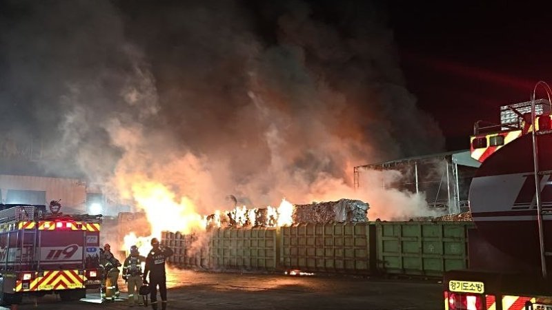 (수원=뉴스1) 김기현 기자 = 28일 새벽 3시 36분께 경기 수원시 영통구 하동 자원순환시설 내 야적장에서 불이 나 1시간 50여 분 만에 진화됐다.
