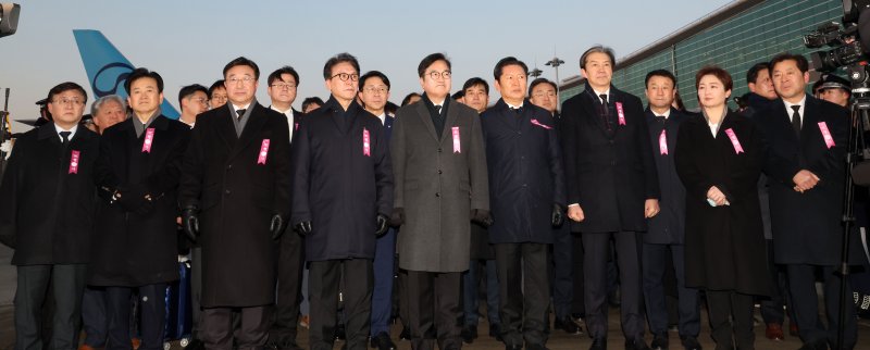 한병도 민주당 원내대표, 이언주, 황명선 최고위원 등 민주당 지도부도 공항을 찾아 고인을 맞았다.