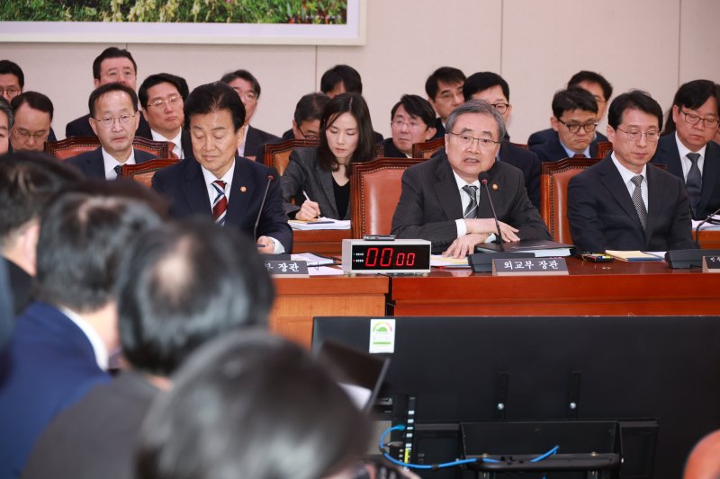 이재정 민주당 의원은 "트럼프의 특수성을 부인하는 분은 없을 것"이라며 "전례를 보기 힘든 미국 대통령의 변주곡에 대응하기 위해 외교부, 정부의 스킬만 필요한 게 아니라 여야가 깊은 고민을 통해 지혜를 발휘할 때"라고 했다.