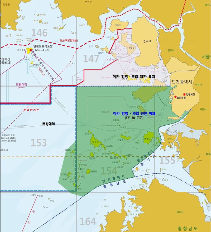 이에 따라 야간 조업 해제에 따른 안전관리 계획을 제출한 인천광역시와 경기도 선적 어선에 한해 37° 30' 이남 서해 해역에서 꽃게 성어기인 3월부터 야간에도 항행과 조업이 가능해지게 됐다.