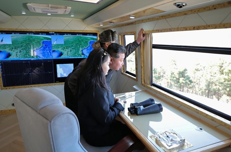 28일 노동신문 등 북한 관영매체들에 따르면, 미사일총국은 전날인 27일 새로운 기술이 도입된 '갱신형 대구경방사포 무기체계 시험사격'을 진행했다. 김 총비서는 딸 주애와 함께 방사포 시험사격의 전 과정을 지켜봣다.