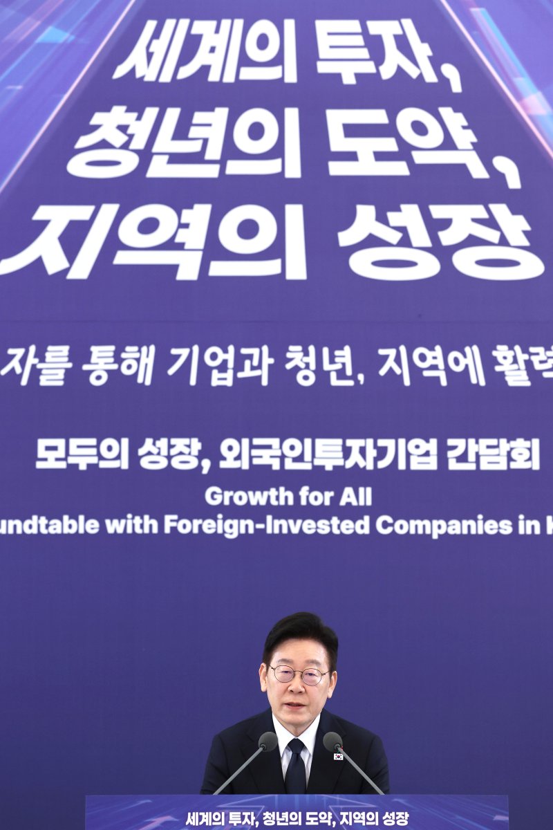 이 대통령은 이날 청와대 본관에서 열린 '모두의 성장, 외국인투자기업 간담회' 모두발언에서 "대한민국은 땅덩어리로는 매우 좁다"며 "서울과 지방은 고속철도로 2시간 남짓이면 도달한다"고 말했다. 그러면서도 "거리로는 큰 차이가 없는데 정치·경제적으로는 엄청난 차이가 있다"고 설명했다.