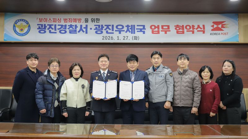 [파이낸셜뉴스] 서울 광진경찰서는 최근 지능화·고도화되고 있는 보이스피싱 등 민생 침해 범죄를 근절하기 위해 서울광진우체국과 업무협약(MOU)을 체결했다고 28일 밝혔다.