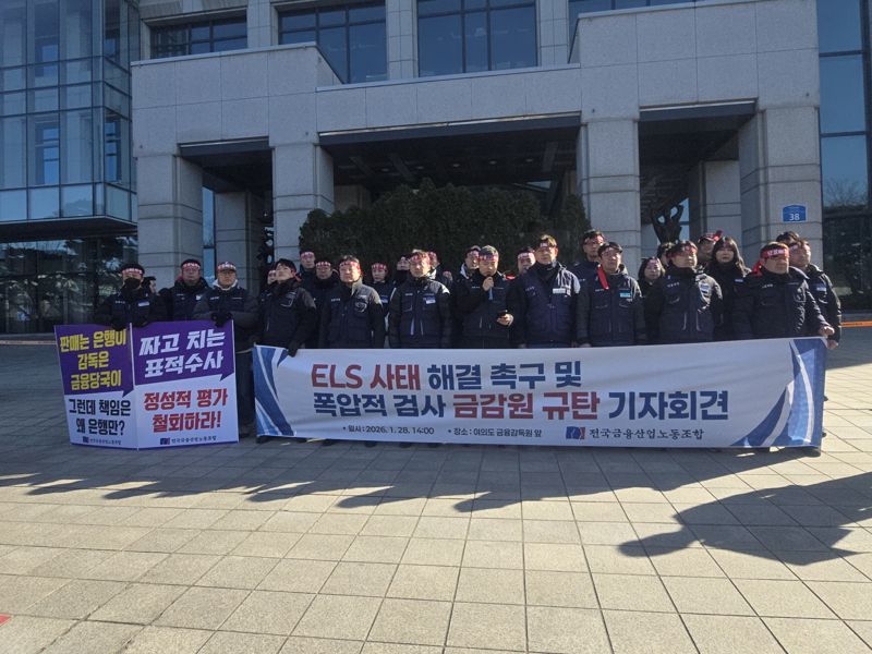 윤석구 28대 금융노조 위원장 당선인은 28일 서울 여의도 금융감독원 앞에서 열린 'ELS 사태 해결 촉구 및 폭압적 검사 금감원 규탄 기자회견'에서 "금감원은 금융산업의 최종 수호자여야 하지만, 지금 감독이 아니라 공포가 작동하는 금융현장을 만들고 있다"면서 "ELS 과징금 산정 기준은 법의 취지와 비례성 원칙을 넘어 과도하게 확장돼 있으며, 그대로 굳어질 경우 금융산업 전반의 위축과 고용 불안, 소비자 선택권 축소로 이어질 수 있다"고 주장했다.