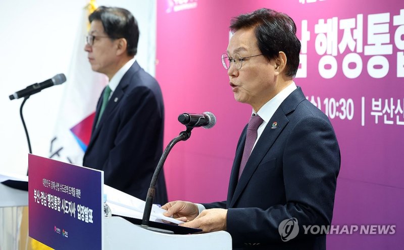박형준 부산시장과 박완수 경남도지사는 28일 올해 주민투표 실시 후 2028년 통합단체장 선거를 하겠다면서도 확실한 재정·자치분권을 보장하는 특별법을 정부가 수용하면 통합 시기를 더 앞당길 수 있다고 밝혔다.