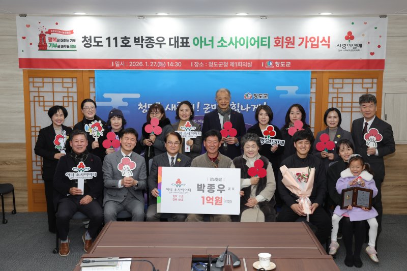 올해 청도군에서 두 번째 아너소사이어티 회원이 된 박종우 대표는 "축산업으로 얻은 결실을 지역사회와 나누는 것은 당연한 책임이자 기쁨"이라며 "청도군의 어려운 이웃들에게 희망을 전하는 데 힘을 보태겠다"고 소감을 밝혔다.