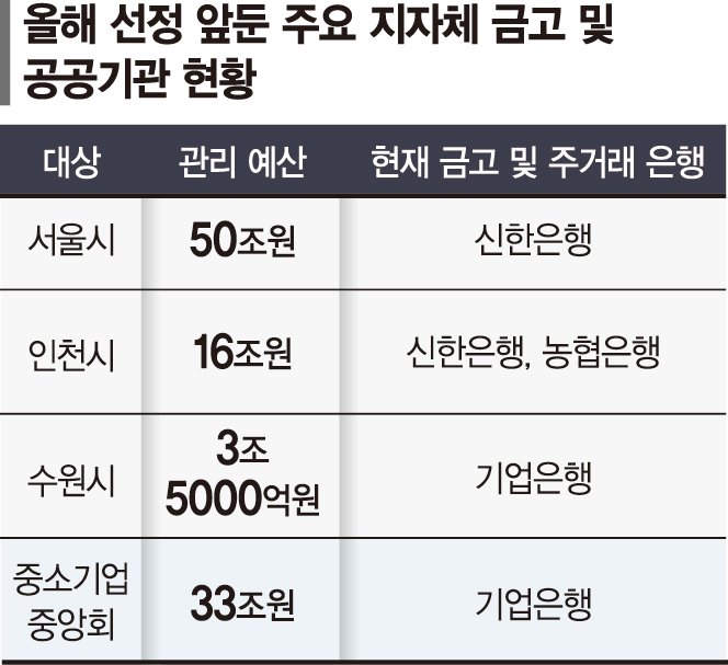 올해 하반기에는 예산 16조원의 인천시금고 선정도 예정돼 있어 은행들의 물밑 경쟁이 한창이다.