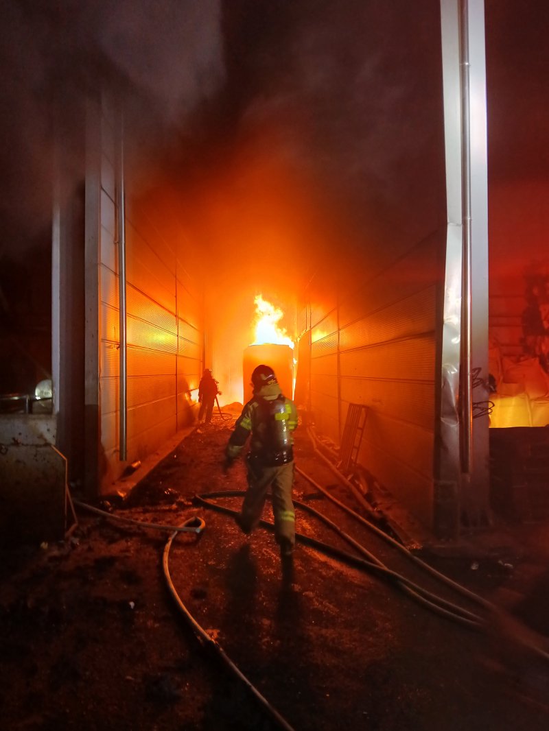 (인천=뉴스1) 이시명 기자 = 29일 오전 5시 56분 인천 서구 가좌동의 한 폐플라스틱 가공처리 공장에서 불이 났다는 119 신고가 접수됐다.