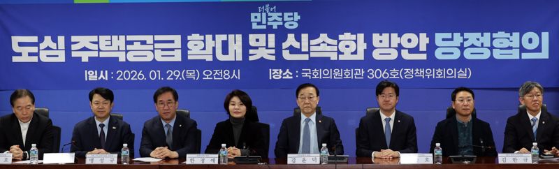 김윤덕 국토부 장관이 29일 국회에서 열린 '도심 주택 공급 확대 및 신속화 방안 관련 당정 협의'에 참석해 정부의 부동산 공급 대책과 관련해 "공급 물량은 이번 발표로 끝나는 것이 아니라 추가로 계속 발표할 것"이라고 말했다.
