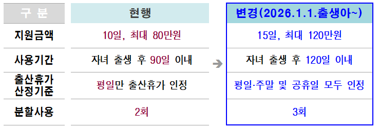 늘어난 출산휴가를 실제로 다 쓸 수 있도록 휴가일수 산정기준, 사용기간, 분할사용 요건을 대대적으로 개선했다.