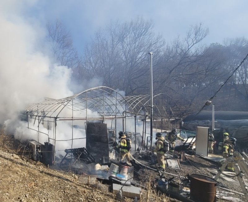 (경기=뉴스1) 김기현 기자 = 29일 오전 10시 49분께 경기 하남시 초이동 세종포천고속도로 초이나들목(IC) 부근 비닐하우스에서 불이 나 약 1시간 30분 만에 꺼졌다. 인명 피해는 없었다.