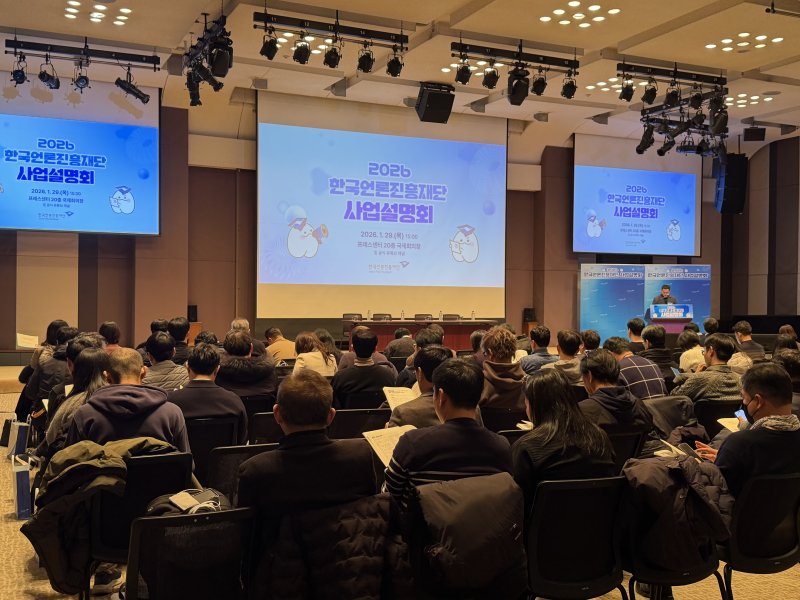 재단은 29일 서울 중구 한국프레스센터 국제회의장에서 '2026 한국언론진흥재단 사업설명회'를 열고 올해 추진할 주요 공모사업 계획을 발표했다. 이날 행사에는 언론사와 언론단체, 학교, 미디어 스타트업 등 유관 기관 관계자들이 참석했다.