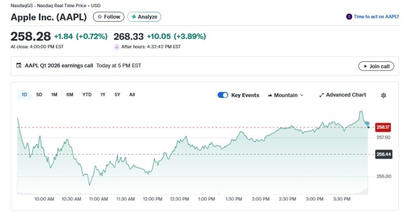 29일(현지 시각) 뉴욕증시 시간외거래에서 애플은 3.89% 급등한 268.33달러를 기록하고 있다. 앞서 정규장서도 0.72% 상승했었다.