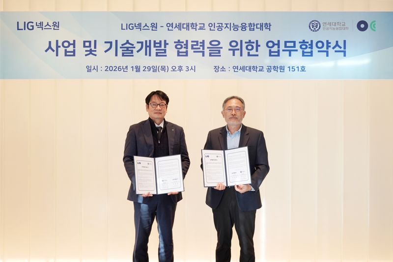 LIG넥스원과 연세대 인공지능융합대학은 협약을 통해 △인공지능(AI) 산학협력 교육 △연구인력 및 기술정보 교류 △AI 공동연구 및 인턴십 등에서 협력한다.