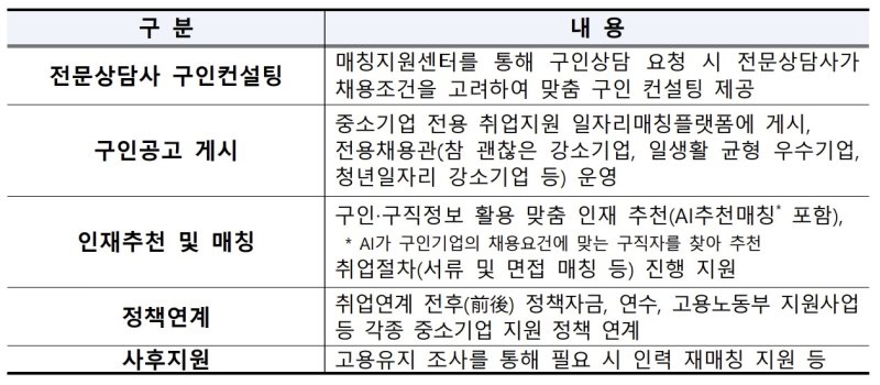 특히 올해는 비수도권 소재 중소기업의 인력난 해소에 중점을 두고 추진할 계획이다. 인공지능(AI)을 활용해 구인 기업·구직자의 지역 정보와 인접성을 반영한 추천 기능을 일자리 매칭 플랫폼에 도입할 예정이다.