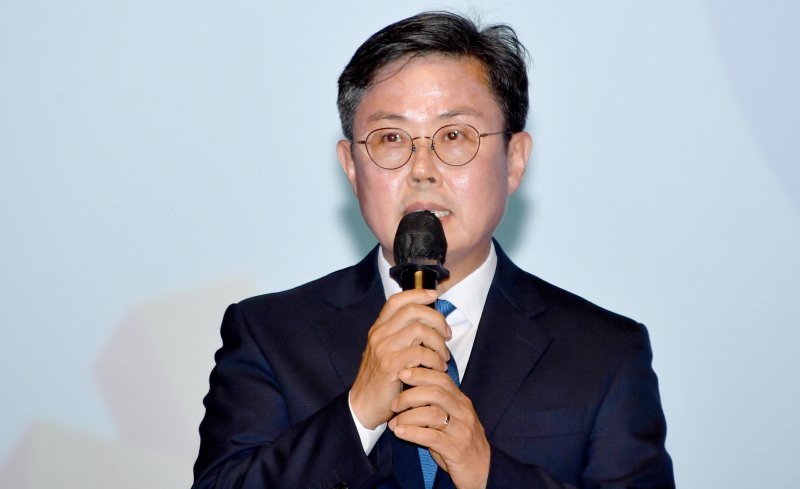 [광주=뉴시스] 류형근 기자 = 25일 오전 광주 서구 광주시청 대회의실에서 제22대 국회의원 선거 광주지역 당선인 초청 행사가 열리고 있다. 안도걸 광주 동구남구을 당선인이 포부를 밝히고 있다. 2024.04.25. hgryu77@newsis.com