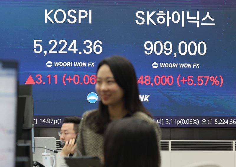 이날 코스피는 전 거래일보다 0.06% 오른 5224.36으로 거래를 마쳤다. 지수는 전장 보다 0.21% 내린 5210.35로 개장한 후 등락을 반복하다 5321.68(1.92%)까지 치솟았다. 코스피가 장중 5300선을 돌파한 것은 이번이 처음이다.