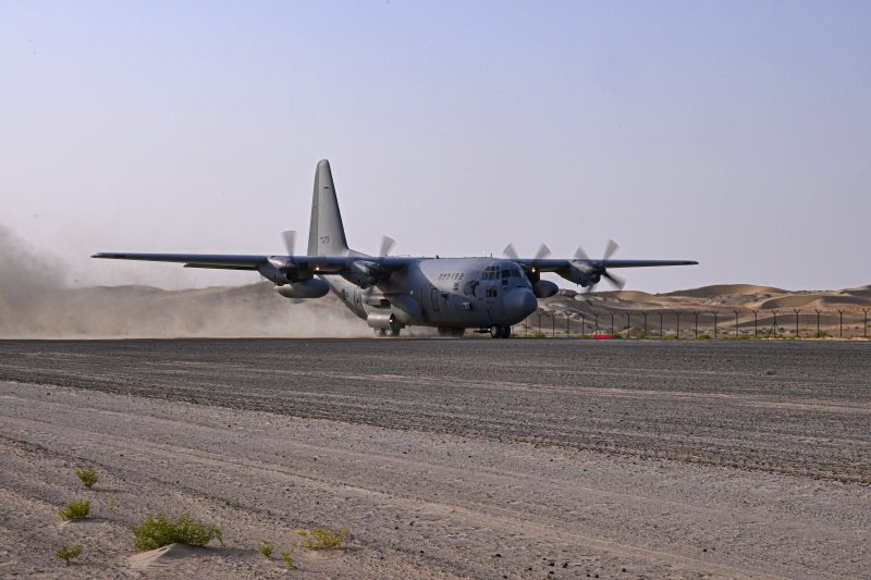 C-130H 수송기는 4개의 터보프롭 엔진을 장착하고 있다. 동승했던 정비사들은 결함원인을 확인했고, 부품을 교체한 뒤 이륙할 예정이다.
