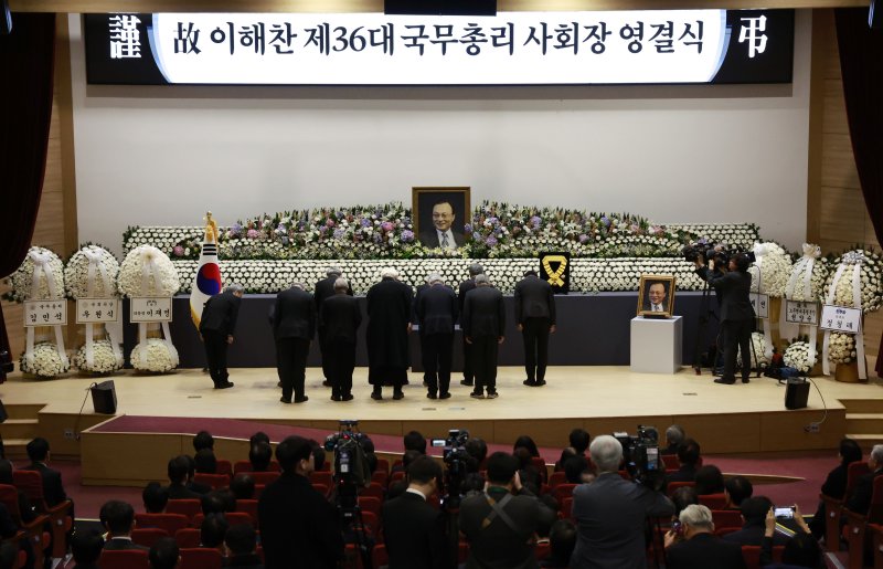 [서울=뉴시스] 권창회 기자 = 31일 오전 서울 여의도 더불어민주당 중앙당사에서 엄수된 고(故) 이해찬 전 국무총리 노제에서 조승래 더불어민주당 사무총장이 영정을 들고 당사로 들어서고 있다. (공동취재) 2026.01.31. kch0523@newsis.com [서울=뉴시스] 권창회 기자 = 31일 오전 고(故) 이해찬 전 국무총리의 운구차량이 서울 여의도 국회의사당 앞을 지나고 있다. 2026.01.31. kch0523@newsis.com [서울=뉴시스] 최동준 기자 = 김민석 국무총리가 31일 서울 여의도 국회 의원회관에서 열린 고 이해찬 전 국무총리(민주평화통일자문회의 수석부의장) 영결식에서 조사하고 있다. 2026.01.31. photocdj@newsis.com [서울=뉴시스] 최동준 기자 = 조정식 정무특보가 31일 서울 여의도 국회 의원회관에서 열린 고 이해찬 전 국무총리(민주평화통일자문회의 수석부의장) 영결식에서 약력보고를 하고 있다. 2026.01.31. photocdj@newsis.com [서울=뉴시스] 최동준 기자 = 우원식 국회의장이 31일 서울 여의도 국회 의원회관에서 열린 고 이해찬 전 국무총리(민주평화통일자문회의 수석부의장) 영결식에서 추도사 하도 있다. 2026.01.31. photocdj@newsis.com [서울=뉴시스] 최동준 기자 = 정청래 더불어민주당 대표가 31일 서울 여의도 국회 의원회관에서 열린 고 이해찬 전 국무총리(민주평화통일자문회의 수석부의장) 영결식에서 추도사 하고 있다. 2026.01.31. photocdj@newsis.com [서울=뉴시스] 최동준 기자 = 이재명 대통령이 31일 서울 여의도 국회 의원회관에서 열린 고 이해찬 전 국무총리(민주평화통일자문회의 수석부의장) 영결식에서 눈물을 닦고 있다. 2026.01.31. photocdj@newsis.com [서울=뉴시스] 최동준 기자 = 이재명 대통령과 김혜경 여사가 31일 서울 여의도 국회 의원회관에서 열린 고 이해찬 전 국무총리(민주평화통일자문회의 수석부의장) 영결식에서 헌화를 하고 있다. 2026.01.31. photocdj@newsis.com [서울=뉴시스] 최동준 기자 = 이재명 대통령과 김혜경 여사가 31일 서울 여의도 국회 의원회관에서 열린 고 이해찬 전 국무총리(민주평화통일자문회의 수석부의장) 영결식에서 헌화를 하고 있다. 2026.01.31. photocdj@newsis.com [서울=뉴시스] 권창회 기자 = 고(故) 이해찬 제36대 국무총리 사회장 영결식이 엄수된 31일 오전 영결식을 마친 고인의 운구행렬이 서울 여의도 국회의사당을 나서고 있다. (공동취재) 2026.01.31. photo@newsis.com [서울=뉴시스] 권창회 기자 = 고(故) 이해찬 제36대 국무총리 사회장 영결식이 엄수된 31일 오전 영결식을 마친 고인의 운구행렬이 서울 여의도 국회의사당을 나서고 있다. (공동취재) 2026.01.31. photo@newsis.com ☞공감언론 뉴시스 kch0523@newsis.com, photocdj@newsis.com <저작권자ⓒ 공감언론 뉴시스통신사. 무단전재-재배포 금지.>