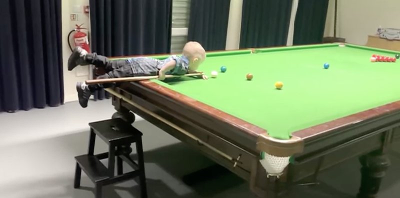 [서울=뉴시스]윤서진 인턴 기자 = 당구대에 닿기 위해 발판용 의자가 필요한 두 살배기 소년이 놀라운 스누커 실력으로 기네스 세계기록 보유자가 됐다.