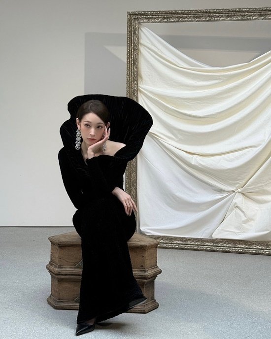 사진 속 애니는 독특한 핏의 블랙 드레스와 화려한 액세서리를 착용한 뒤 포즈를 취하고 있다. 우아하면서도 고혹적인 비주얼이 시선을 사로잡는다.