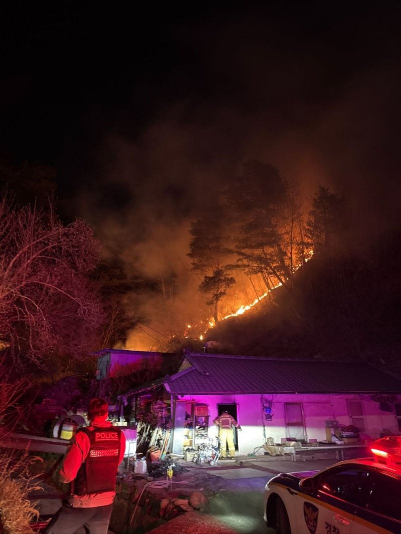 야간 시간대인 만큼 헬기 투입은 불가능해, 산림당국은 지상 진화 인력을 중심으로 산불 확산 차단에 주력하고 있다.