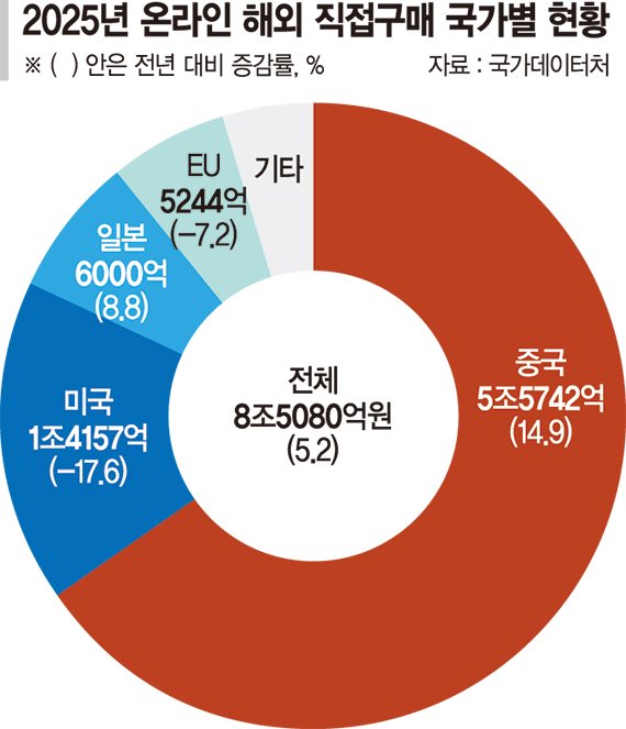 2일 국가데이터처가 내놓은 '2025년 12월 및 연간 온라인쇼핑 동향'에 따르면 지난해 해외직구 규모는 8조5080억원으로 전년 대비 5.2% 증가하는 데 그쳤다. 이는 지난 2015년 3.3% 이후 가장 작은 증가폭이다.
