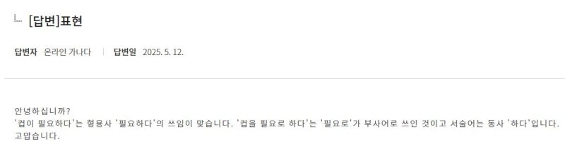 2. 온라인가나다 상세보기 '필요로 하다' - https://m.korean.go.kr/front/onlineQna/onlineQnaView.do?mn_id=216&qna_seq=309816&pageIndex=1
