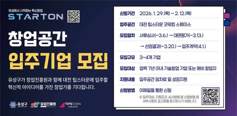 유성구 관계자는 "비수도권 최초로 설립된 팁스타운에는 우수한 스타트업과 투자사들이 입주해 있다"며 "입주한 기업이 더 성장할 수 있도록 지원하겠다"고 말했다.