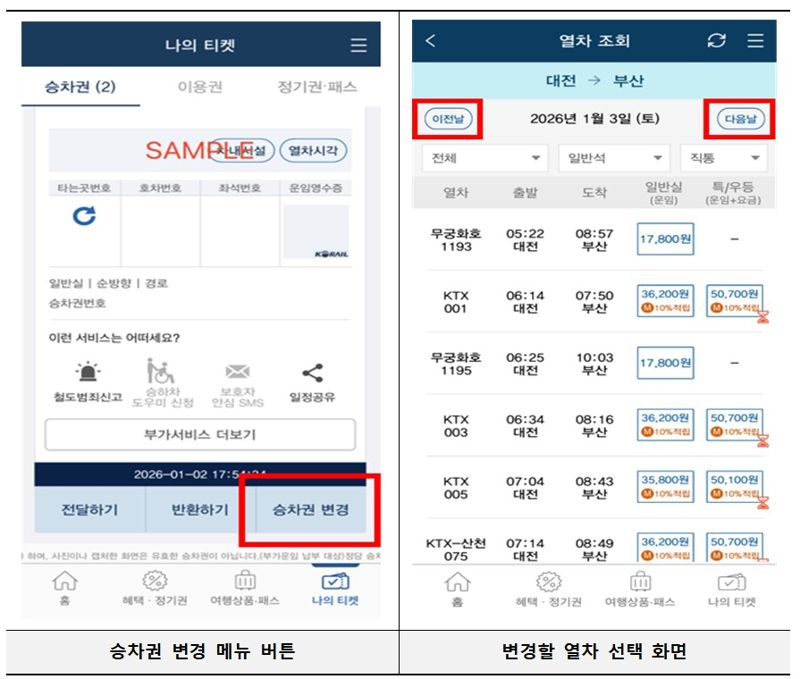 출발 30분 전까지 위약금 없이 시간 변경…대상 열차도 승차일 전·후 7일로