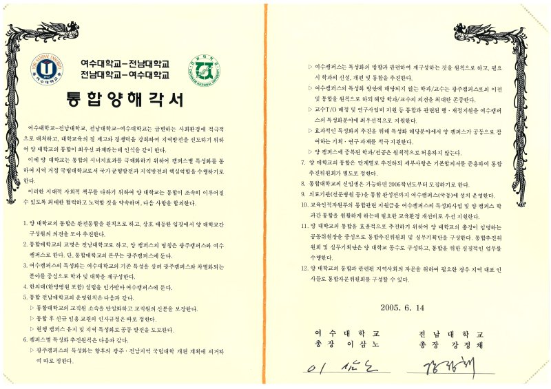 2005년 6월 당시 전남대와 여수대가 맺은 통합양해각서에는 '한방병원을 포함한 한의대 설립을 인가받아 여수캠퍼스에 둔다'는 내용이 포함됐다.