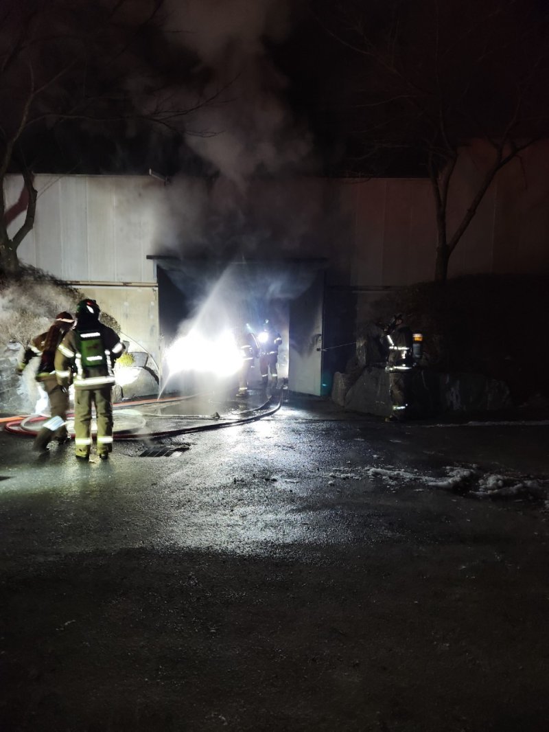 "지하에서 연기가 보인다"는 관계자 신고를 받고 출동한 소방 당국은 연소 확대를 우려해 '대응 1단계'를 발령하고 진화 작업을 벌였다.