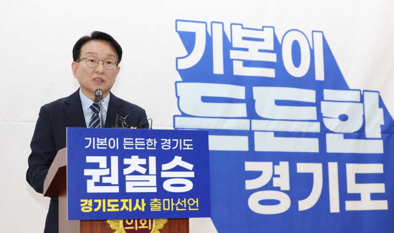 (수원=뉴스1) 송용환 기자 = 권츨승 의원(민주·경기 화성시병)이 3일 오전 경기도의회 브리핑룸에서 기자회견을 열고 제9회 지방선거 경기도지사 출마를 공식 선언했다. 권 의원은 '기본이 든든한 경기도, 덜 피곤한 경기인'을 슬로건으로 내걸고 민생 중심의 도정 패러다임 전환을 예고했다.