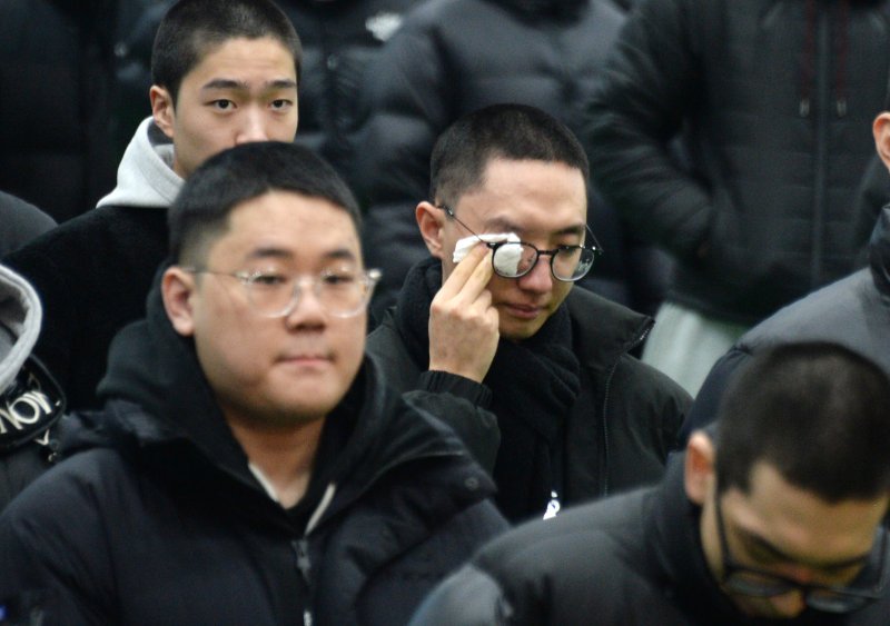 입영식 내내 아들 보낸 부모님 눈가에 눈물 맺혀