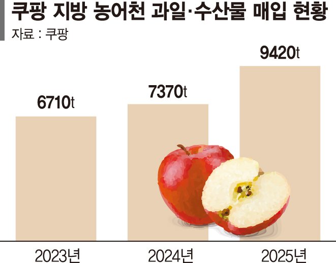 3일 쿠팡에 따르면 지난해 쿠팡이 인구감소지역을 비롯한 지방 농어촌에서 매입한 과일과 수산물은 9420t으로 역대 최고치를 찍었다. 2024년 대비 지난해 매입 규모 증가율은 28%로, 전년 증가율(10%)을 훌쩍 뛰어넘었다.