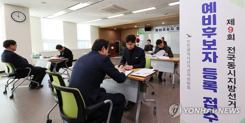 (인천=연합뉴스) 홍현기 기자 = 오는 6월 3일 치러지는 제9회 전국동시지방선거의 예비후보자 등록 첫날인 3일 인천에서 인천시장 선거 출마 예정자 1명, 인천시교육감 선거 출마 예정자 3명이 예비후보로 등록했다.