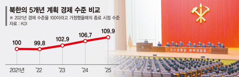3일 한국개발연구원(KDI)이 내놓은 '북한경제리뷰' 보고서에 따르면 2021~2025년 국가경제발전 5개년 계획 기간 북한 경제는 전반적인 회복 국면에 진입했다. 2021년을 100으로 할 때 2025년 경제 수준은 약 110까지 상승한 것으로 추정된다. 누적 기준 약 10% 개선된 셈이다.