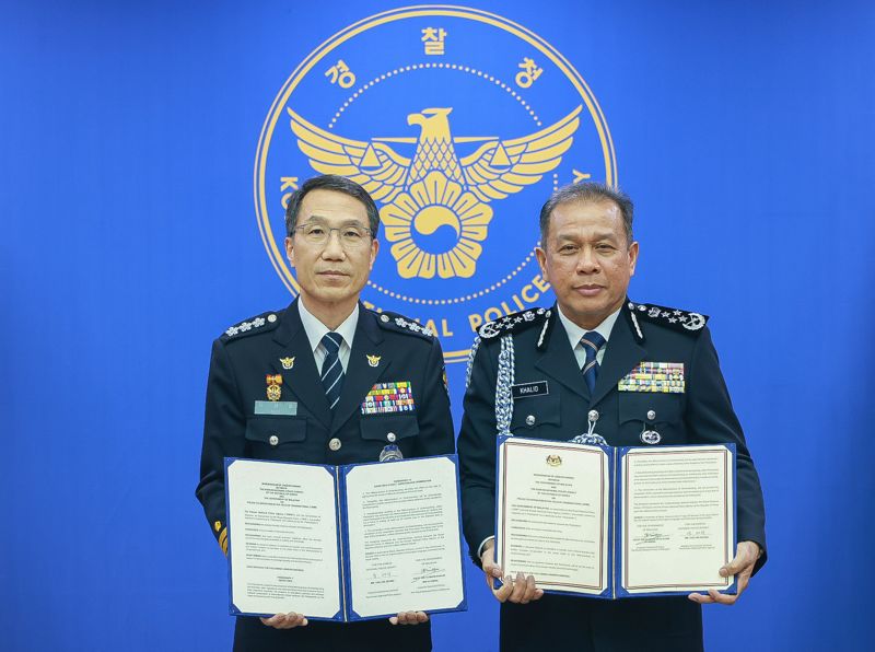 경찰청은 4일 서울 서대문구 경찰청사에서 모하드 칼리드 빈 이스마일 말레이시아 경찰청장과 양국 치안 총수 회담을 열고 '초국가범죄 대응을 위한 치안 협력 양해각서(MOU)'를 체결했다고 밝혔다.