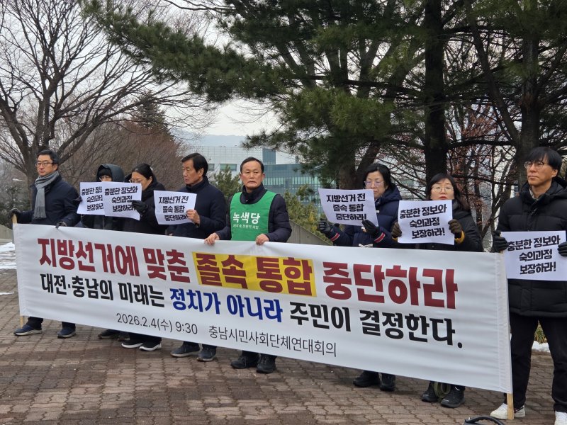 충남 지역 30여개 시민사회단체로 구성된 연대회의는 "지역의 행정 체계와 주민의 삶을 근본적으로 바꿀 중대한 정책이 충분한 논의와 숙의 없이 정치적 결단으로 밀어붙여지고 있다"며 "민주주의 방식이 아닌 권력의 방식"이라고 지적했다.