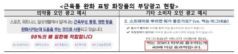 소비자원은 식품의약품안전처에 근육통 완화 표방 화장품에 대한 점검 등을 요청할 계획이다.