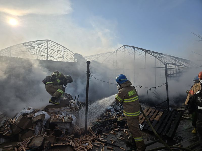 [파이낸셜뉴스] 4일 오전 8시 38분 부산 강서구의 한 프라이팬 손잡이를 생산하는 비닐하우스 작업장에서 원인을 알 수 없는 불이 나 작업시설을 태우고 40여 분만에 꺼졌다.