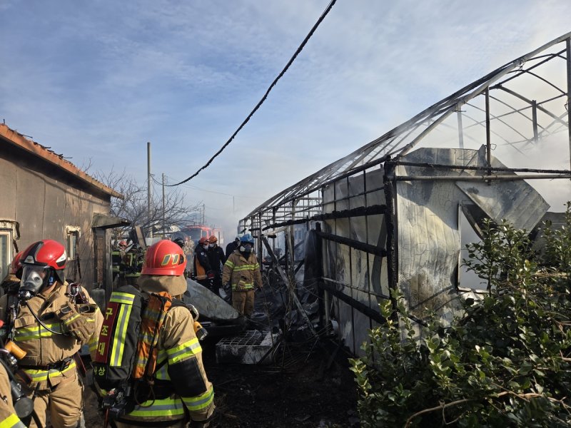 (부산=연합뉴스) 손형주 기자 = 4일 오전 8시 38분께 부산 강서구 강동동 한 비닐하우스 작업장에서 불이 났다.