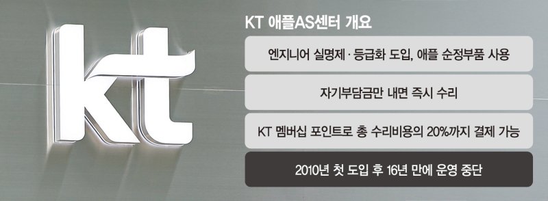 4일 업계에 따르면 KT는 자사 고객을 대상으로 아이폰·아이패드 등 애플 제품의 수리·점검 서비스를 제공해온 애플AS센터를 올해부터 운영하지 않기로 했다. KT 직영점인 KT플라자에서 함께 운영된 전국 11개 센터가 모두 폐쇄됐고, 수십명의 애플 인증 테크니션들도 현장을 떠났다.